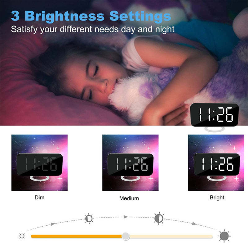 LED Mirror Digital Alarm Clock with Diming Mode Dual USB Ports
